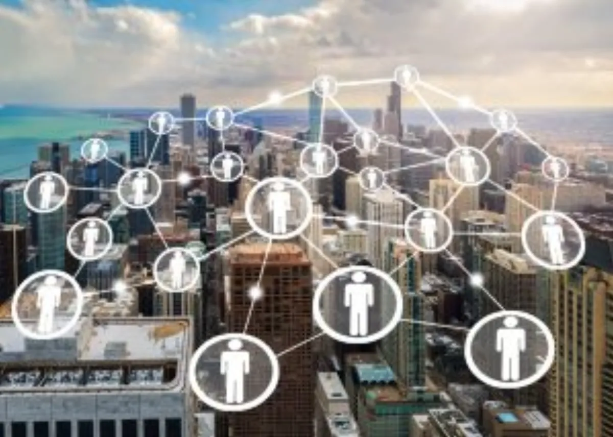 connection concept by people icon on chicago city